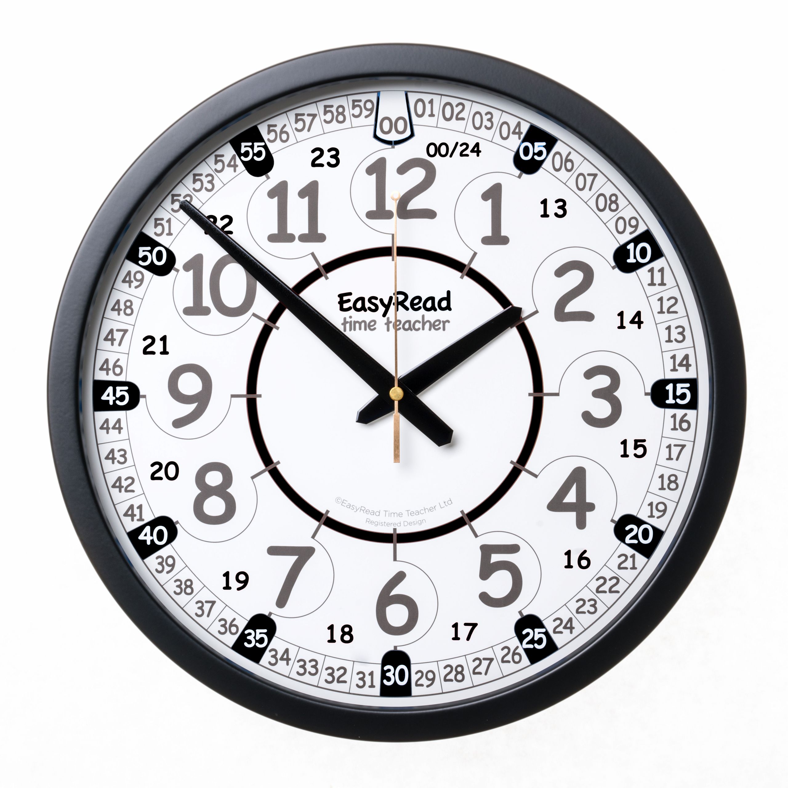 Outdoor Playground Wall Clock featuring similar face designs to the EasyRead Classroom Clocks. Allowing effortless reinforcement of classroom learning, it can be placed anywhere students congregate outdoors: at the school entrance, in the playground. Also suitable for outdoor activity centres, gardens, children’s farms and sports facilities. This outdoor clock has a weatherproof powder-coated steel frame with toughened glass.